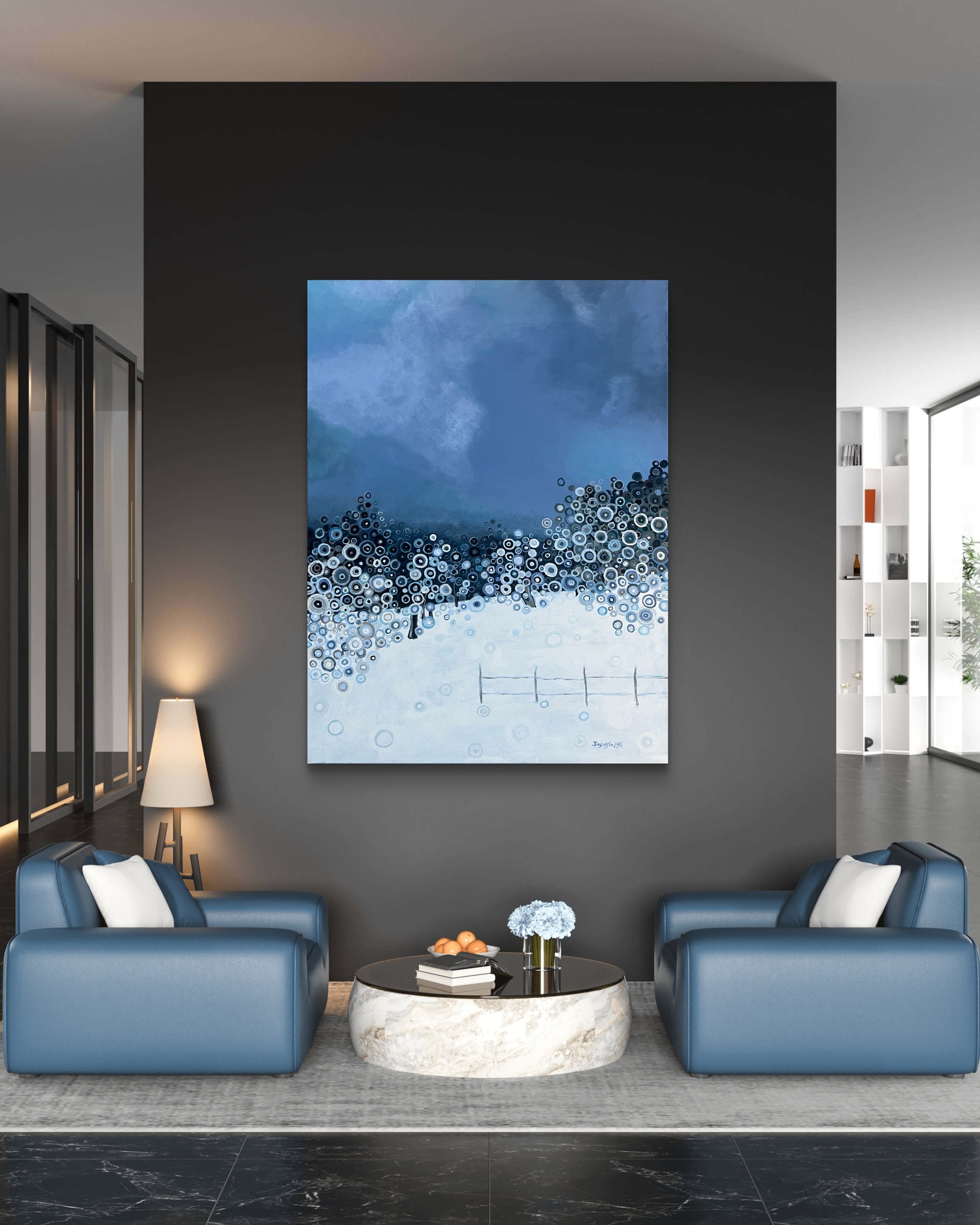„Baby, It's Cold Outside“ ist kein dekoratives Kunstwerk. Es wurde für Interieurs geschaffen, die Wert auf ruhige Präsenz, saisonale Schönheit und Kunst legen, die ein Gefühl von Klarheit und Weite vermittelt.