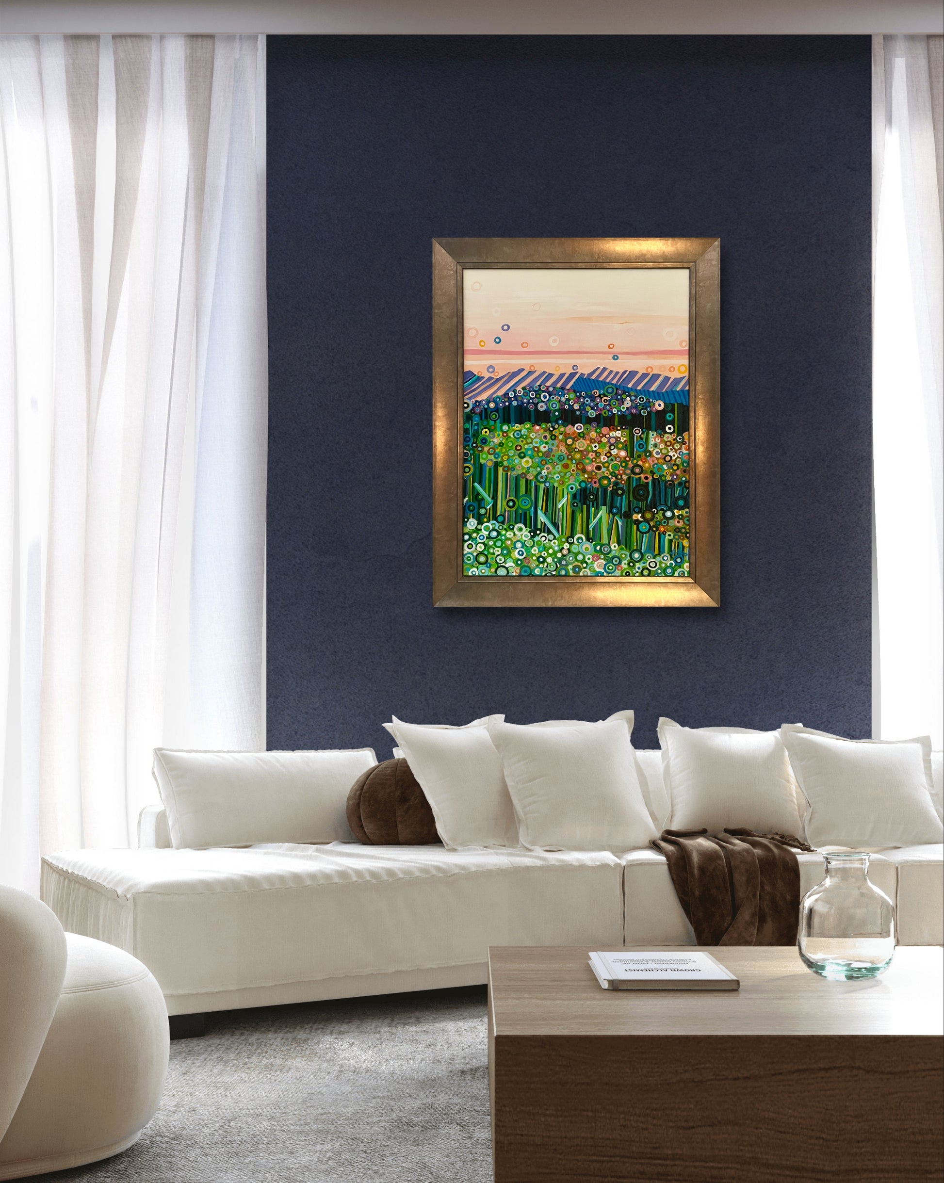 Dieses 2021 entstandene Acrylbild auf Leinen zeigt die exakte Aussicht von meinem Haus in den Bergen – ein Ort, der mir Ruhe, Weitblick und kreative Klarheit schenkt. Die Landschaft wirkt vertraut, bewohnt und emotional nah, nicht fern oder eingebildet.