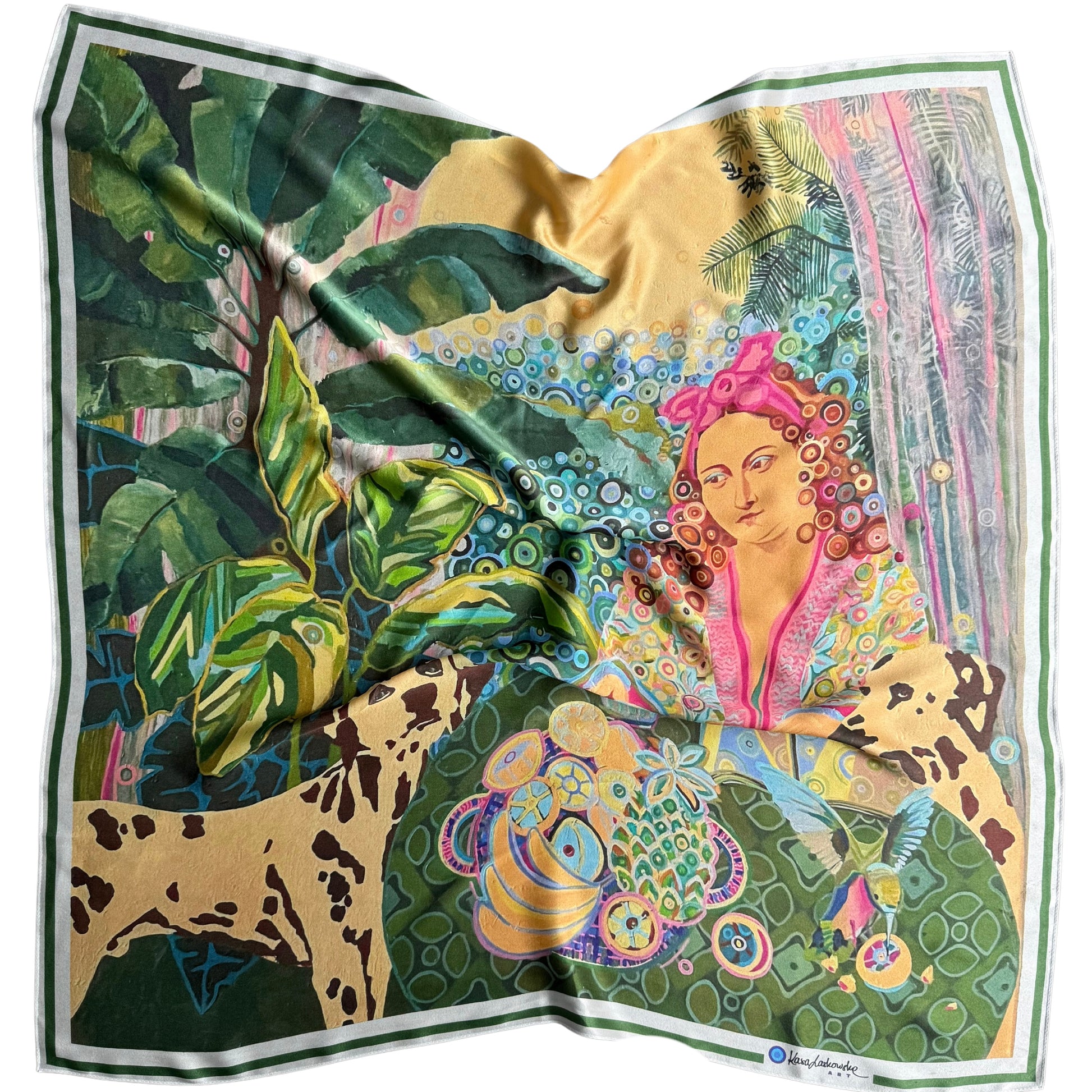 Luxury silk scarf featuring the motif of my original painting Good Company. A wearable art piece created for timeless elegance and everyday luxury.