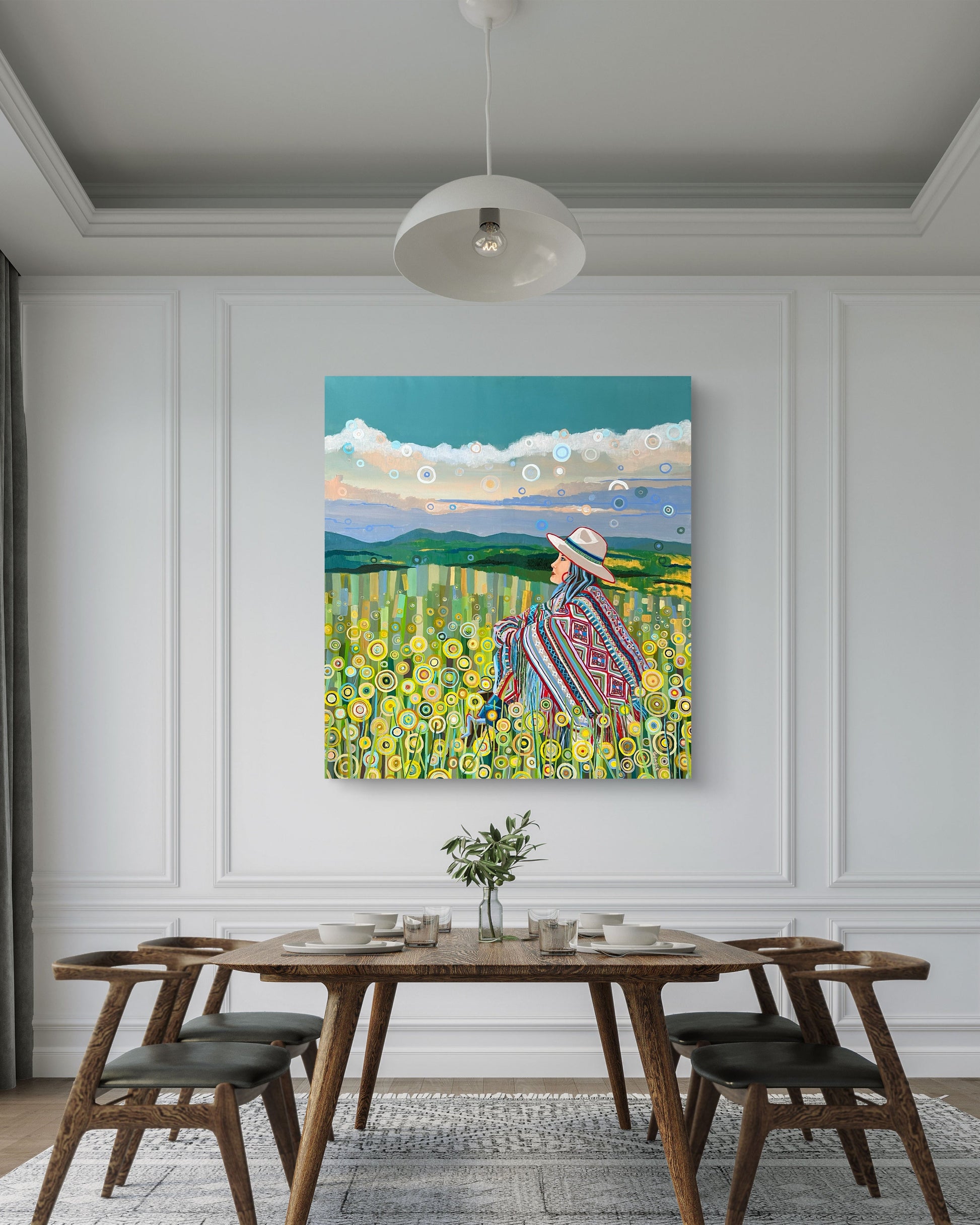 Dieses 2024 entstandene Acrylbild auf Leinwand spiegelt eines meiner liebsten Sommerrituale wider: auf dem Boden zu sitzen und still die Berge zu betrachten. In solchen Momenten verlangsamt sich die Zeit, die Gedanken beruhigen sich, und die umgebende Landschaft wird zu einem Ort der Ruhe und Klarheit.