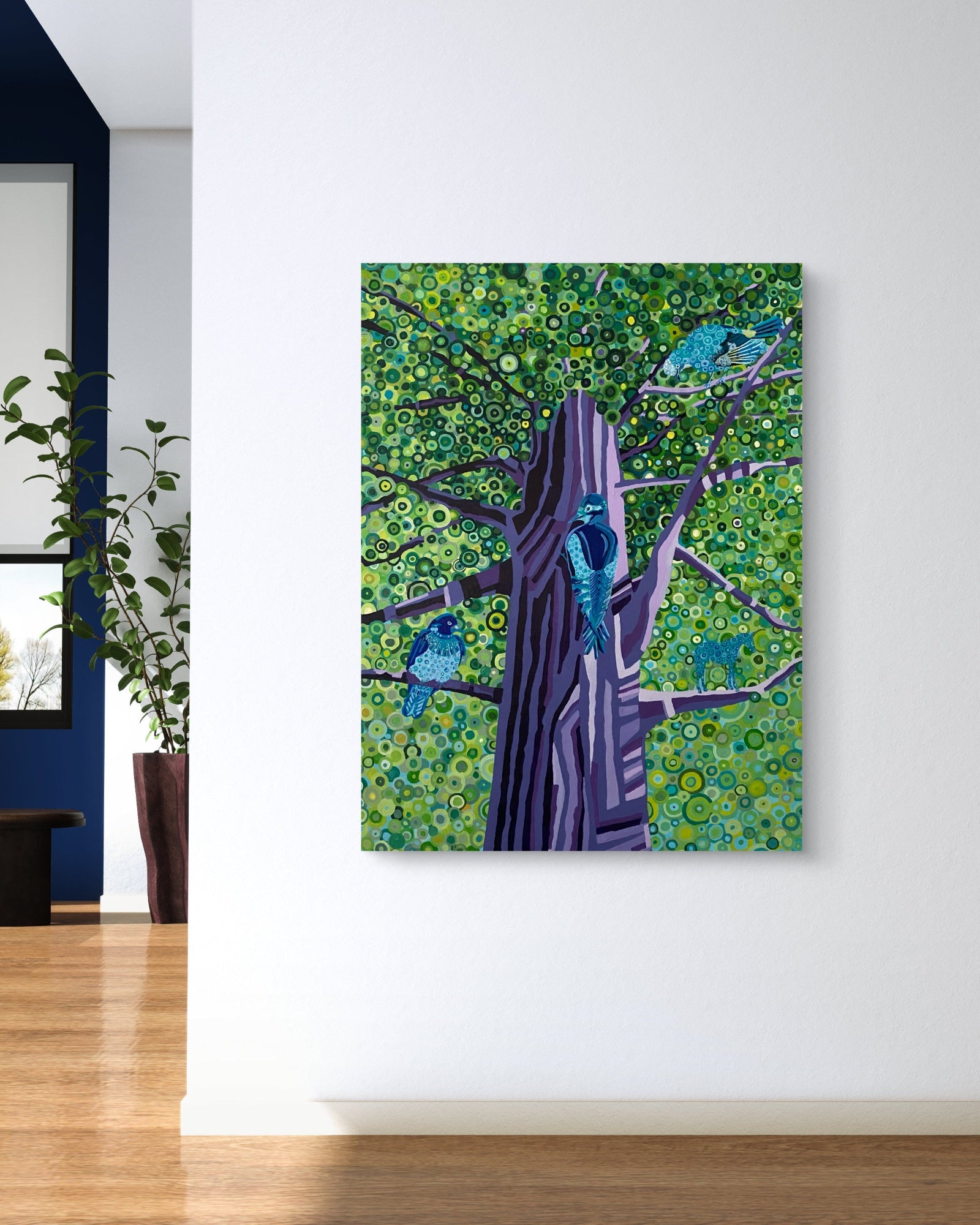 Die Idee, einen Baum zu malen, hatte mich lange beschäftigt. Anfangs erschien sie mir zu simpel – fast langweilig. Doch das änderte sich, als ich die richtige Farbsprache fand. Die Verwendung von Violett veränderte die Komposition und verlieh dem Baum Tiefe, Ausdruckskraft und eine stille Intensität.